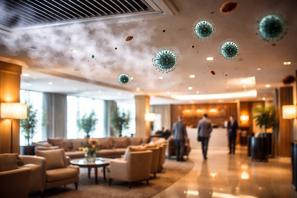 Hotéis, por sua natureza, apresentam características que os tornam ambientes particularmente sensíveis: alta rotatividade de hóspedes, diversidade geográfica dos visitantes, uso intensivo de sistemas de climatização e permanência prolongada em espaços fechados, como quartos, corredores e áreas comuns. Esses fatores, quando associados a falhas na manutenção ou no controle ambiental, podem transformar o ar interno em um vetor relevante para a disseminação de doenças infecciosas e não infecciosas.