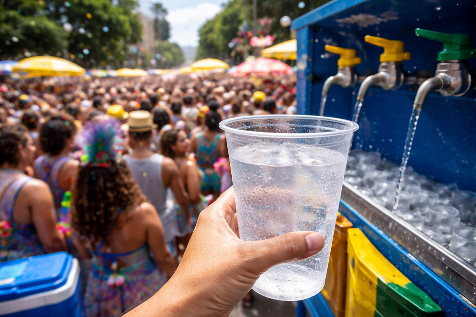 Durante o Carnaval, ambulantes produzem bebidas e gelo em grande escala. Caso a água utilizada não seja monitorada, há risco significativo de surtos alimentares.