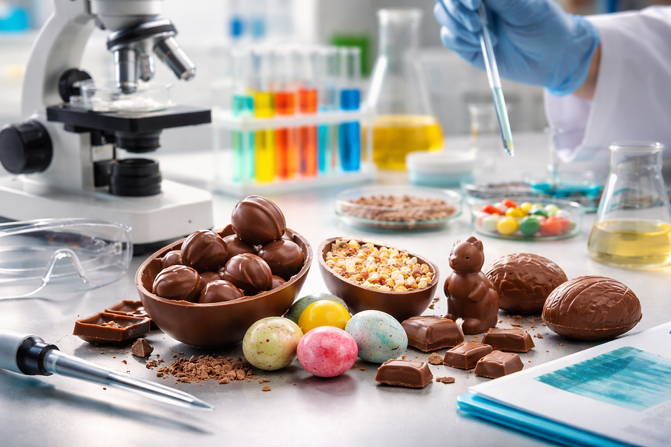 Como validar novos produtos de Páscoa com testes laboratoriais: rigor científico, segurança alimentar e qualidade industrial